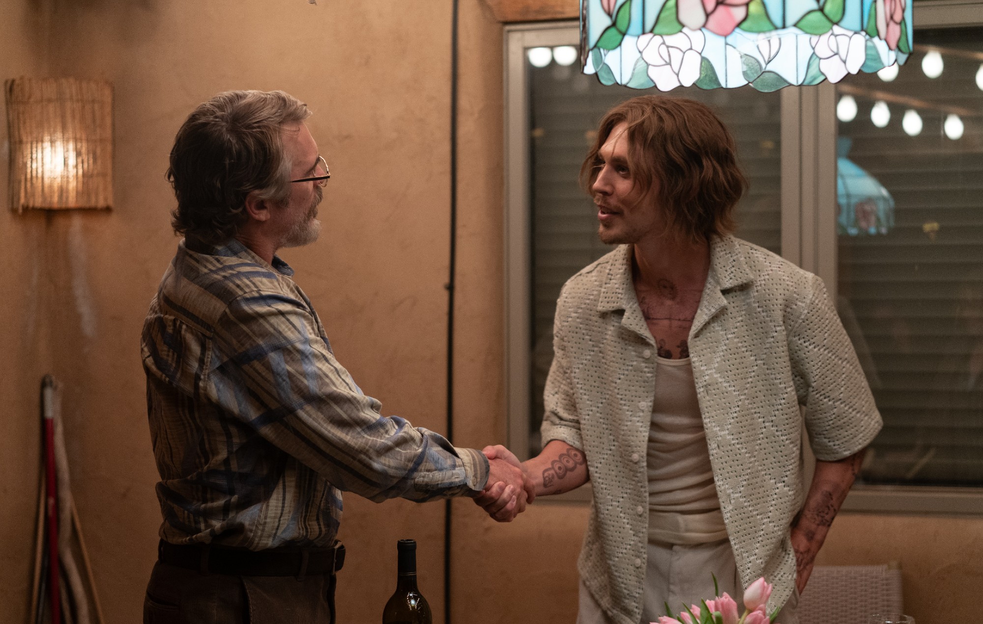 Aster never forgets to also focus heavily on the family drama aspect of his narratives, family trauma is always at heart of his narratives, whether its Toni Colette’s grief over her daughter’s death in Hereditary, Beau’s trauma around his childhood with his mother, or the suicide of Florence Pugh’s sister that forms the narrative of Midsommar, its always present. Here, Phoenix’s Joe Cross, must deal with the disfunction at home with his wife, played by Emma Stone. Stone’s role is minimal but crucial and easily could be analysed as Aster taking a shot at cancel culture and the commercialisation of the Me-Too movement in the modern day, and potentially how it has been angled away from true cases. Austin Butler portrays essentially a cult leader, an internet personality that takes advantage of the dissolution between husband and wife, and he delivers his performance exceptionally. He seems a mix between Andrew Tate and former actor Russel Brand, an internet personality that has become increasingly more famous because of everyone’s affinity for their phones in a time when they are locked at home. The rest of the cast serve their roles well enough, with Pedro Pascal playing a charming but multi-layered mayor who seems to have sold his soul to mega corporations, and Luke Grimes delivering an evil but humorous police officer character.
