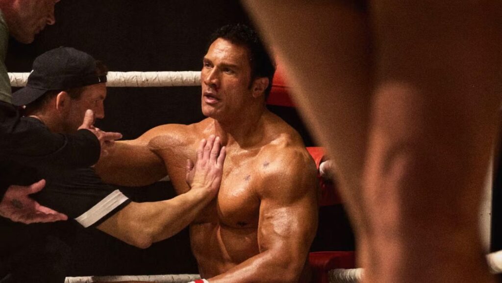 Safdie’s script however does not feel up to the task of delivering the emotional weight needed for this type of film, with a lot of the dialogue coming across as clunky and strange when not delivered by a capable actor. A large section of the supporting cast includes boxing and MMA champions, with Ryan Bader, Bas Rutten and Oleksandr Usyk all taking roles in the feature, and they all fall flat in both performance and the lines they are given. Bringing these champions in gives the film a level of authenticity, but their acting is just not up to snuff. The film also just lacks a satisfactory narrative structure, the film just retackles the same plot elements repeatedly, multiple fights between Kerr and Staples, multiple drug sequences or a fight sequence, the film is just repeated sequences with very little resolution to each of these plot elements. The film lacks a substantial change in the character’s development or in closing any of these plot elements, that the film just falls into feeling repetitive. A closer look into the rule changes and the other changes that face the MMA during this period, that only exist in the periphery of the film’s narrative, would have livened up the script.