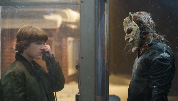 Derrickson’s sequel takes a long time to get going, it’s almost fifty minutes into the feature until the titular villain appears, and an audience’s patience will vary based on how invested into these characters they are. The film’s first act is heavily focused upon centring itself on the fallout of the previous feature, and how the various characters react to their trauma. Massive changes have been made in the lives of our central characters, namely the sobering up of their formerly abusive father, with the film’s depiction of trauma and grief being nothing groundbreaking or original, but strong, nonetheless. Mason Thames’ career has been on the up since getting cast as Finnley in the original feature, starring in Dreamworks’ live action take on How to Train Your Dragon this year, and he shows an impressive amount of control here in his performance. The character’s journey is predictable and may seem cheesy, but Thames delivers two strong distinct versions of his character, the wall that Finnley puts up to not deal with his trauma, and then when the walls come crashing down and he’s revealed to still be a scared child.